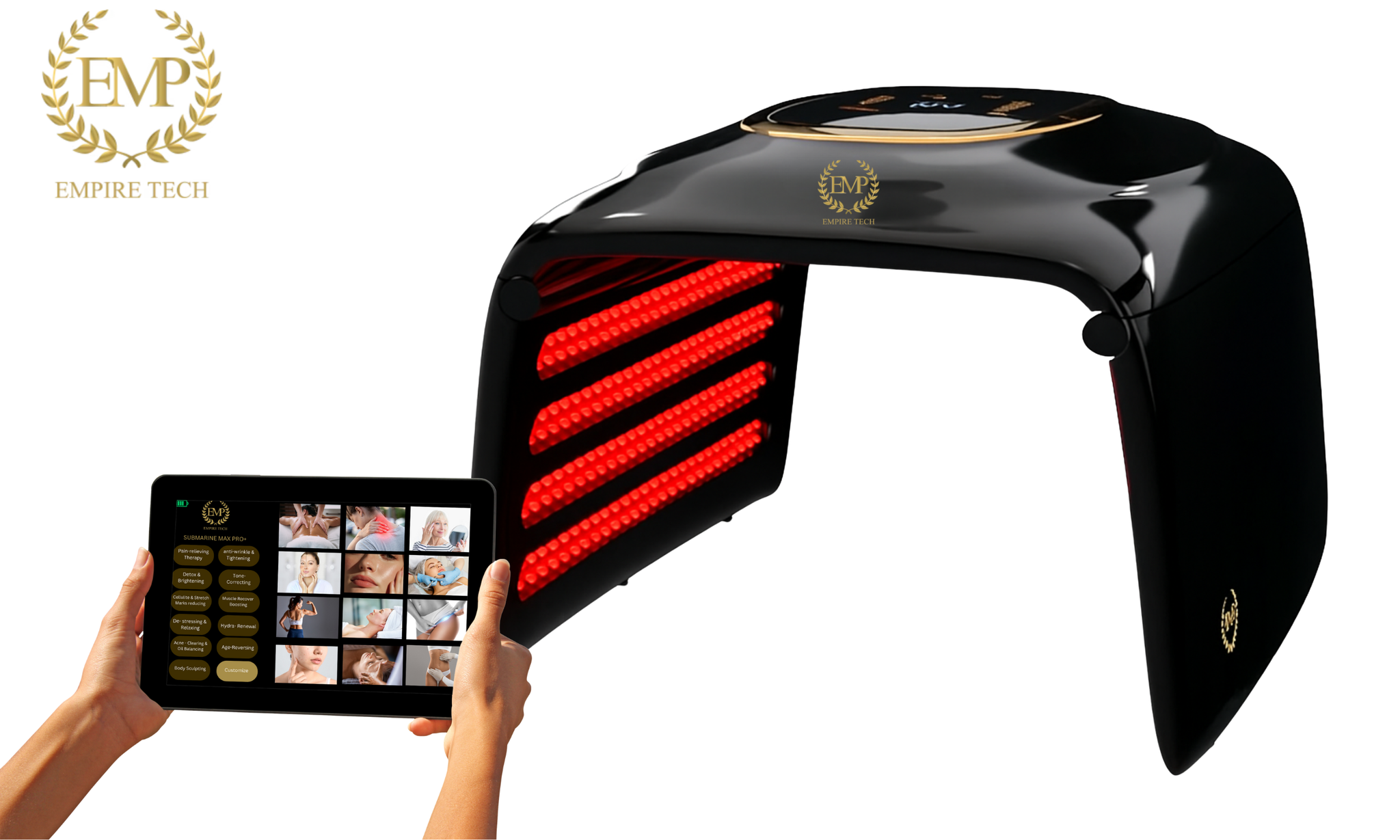 Scientifically proven to stimulate collagen production, reduce inflammation, and expedite the natural healing processes of the skin, red light therapy is a key component of the Submarine Max Pro+.