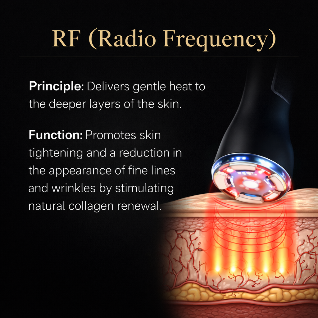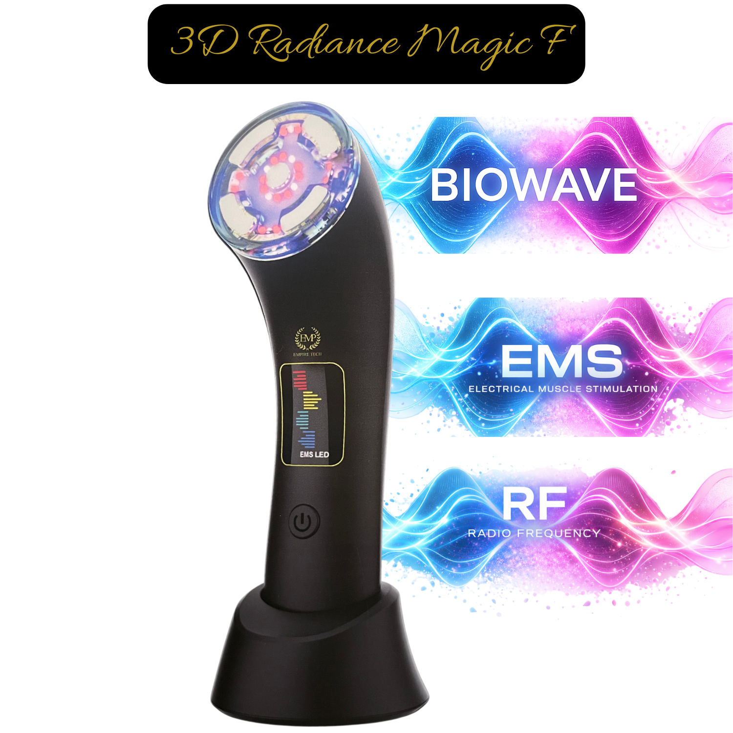 The 3D Radiance Magic F combines four advanced technologies into one sleek, professional-grade device designed to visibly firm, smooth, and rejuvenate the skin—safely and comfortably at home.