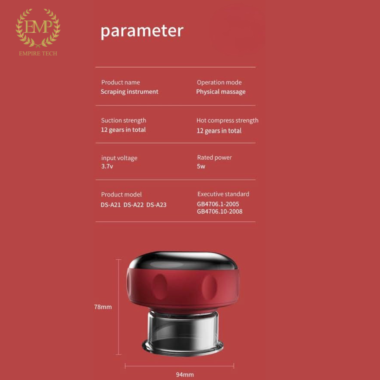 - Functions: Heating · Vacuum suction · Dynamic cupping mode · Red-light support